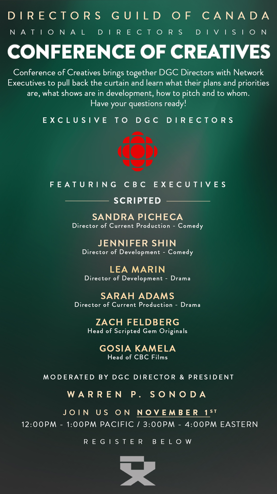 Conference of Creatives brings together DGC Directors with Network Executives to pull back the curtain and learn what their plans and priorities are, what shows are in development, how to pitch and to whom. Have your questions ready!