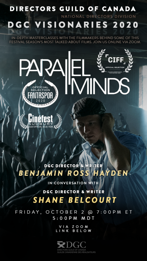 DGC Masterclass avec réalisateur membre de la Guilde Benjamin Ross Hayden animée par réalisateur membre de la Guilde Shane Belcourt.