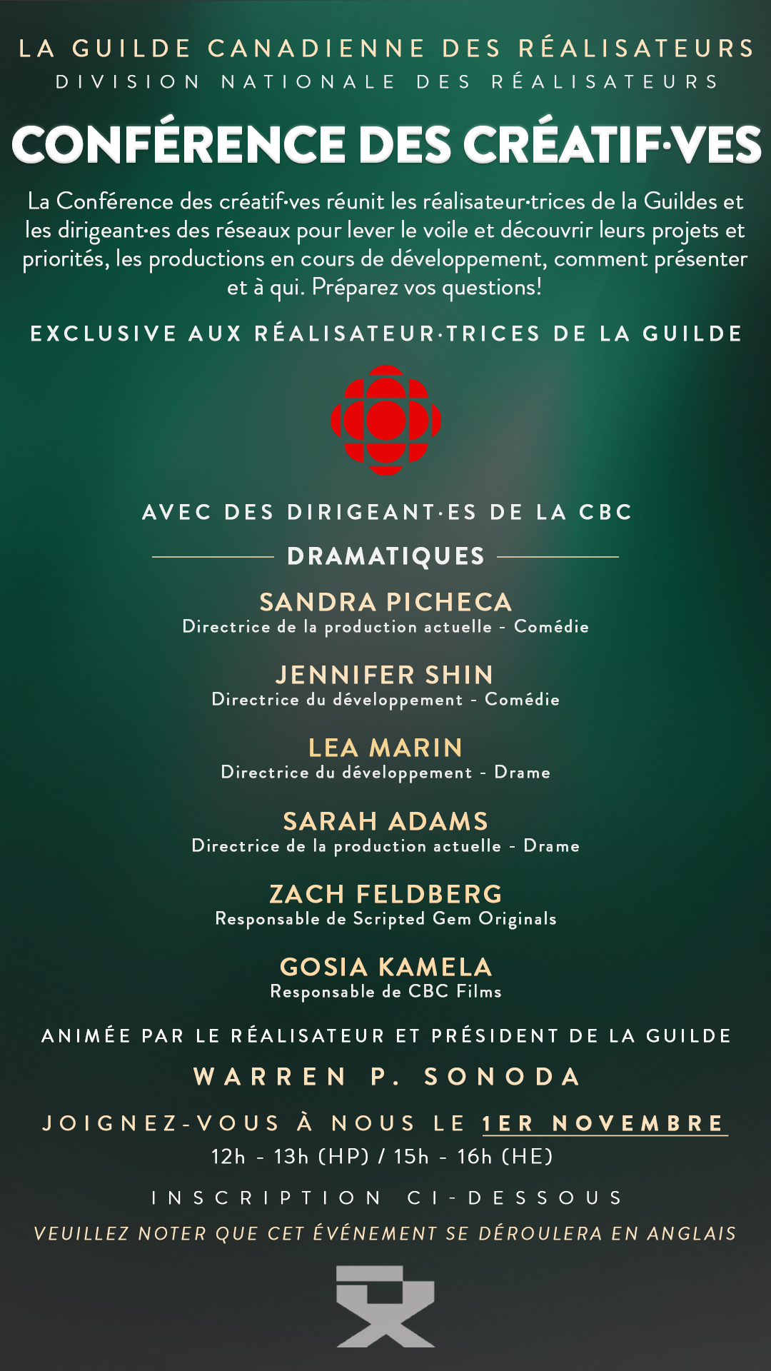 Conference of Creatives brings together DGC Directors with Network Executives to pull back the curtain and learn what their plans and priorities are, what shows are in development, how to pitch and to whom. Have your questions ready!
