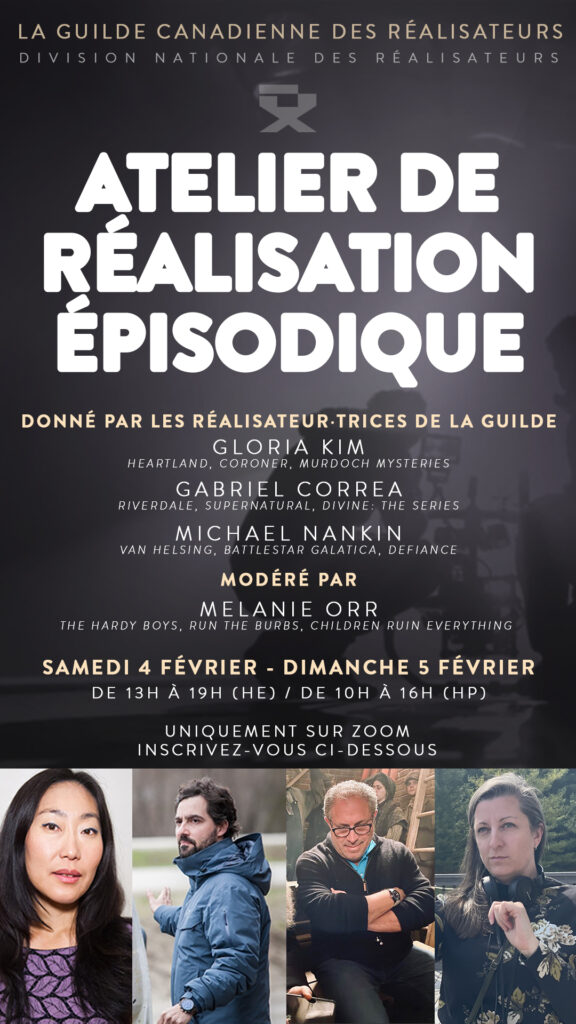 Atelier Téléfilms présenté par Heather Hawthorn Doyle réalisateurs·trices de la guilde chargés de la formation Jennifer Liao, Troy Scott, et David Winning
