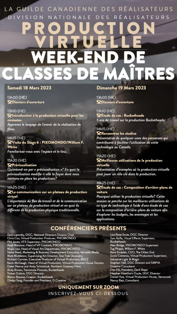 Joignez-vous à nous pour explorer toute l’étendue de la production virtuelle au Canada par le biais de classes de maîtres, d’études de cas, de conférences et de discussions avec des leaders de l’industrie canadienne. Qu’est-ce que la production virtuelle? Où se trouve-t-elle?
